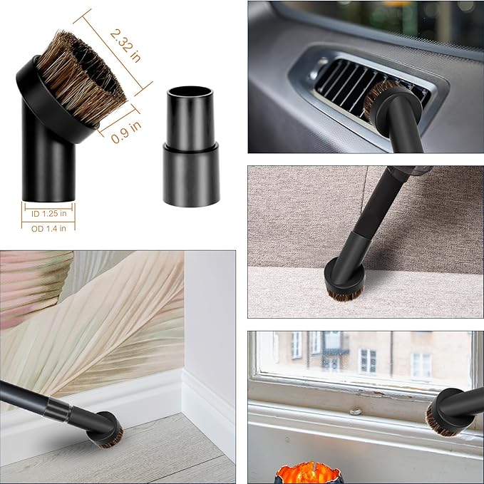 - Manufacturer : Vacuum Attachment Kit, Vacuum Floor Brush, Hose Adapters, Flexible Crevice Tool, Round horse hair va