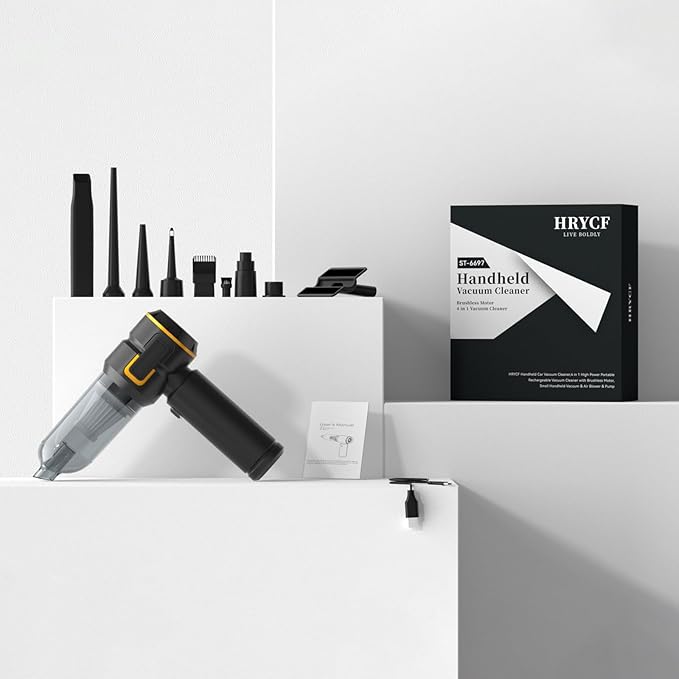 - 【Brushless Motor & 20,000Pa High Power】The rechargeable car vacuum features cutting-edge brushless motor technology, reaching up to 80,000RPM and delivering 20,000PA of suction power. Compared to traditional motors, the brushless design offers stronger suction, enhanced performance, and a longer lifespan.