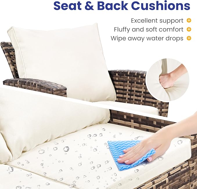 - All-Weather Durability: Built to last,the patio furniture set combines rugged construction with low-maintenance care. The powder-coated steel frame and handwoven PE wicker can spend less time maintaining and more time enjoying your outdoor