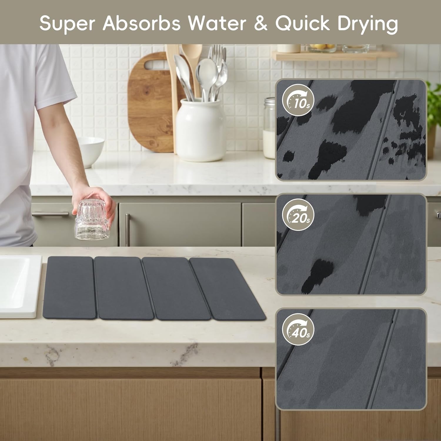 - Super Absorbent & Quick Drying: Drying mat features untral absorption power, quickly soaking up moisture within minutes to keep your kitchen counter dry. bidding farewell to issues of dampness