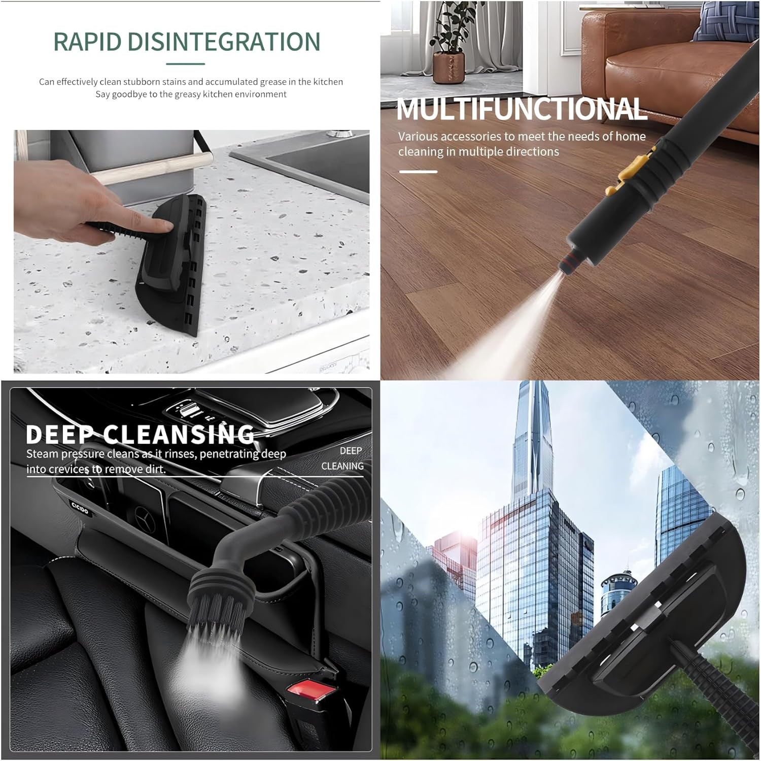 - 【𝗠𝗨𝗟𝗧𝗜-𝗦𝗖𝗘𝗡𝗘𝗦 & 𝗣𝗢𝗪𝗘𝗥𝗙𝗨𝗟 𝗦𝗧𝗘𝗔𝗠】This handheld steam cleaner is a true all-rounder! Handheld pressurized steam cleaner effectively tackles various corners around the house. From floors, cars, sofas - the steamer for cleaning making cleaning a breeze.