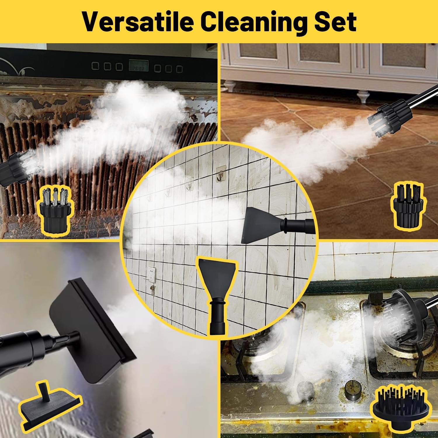 - Powerful & High-Temperature Steam Cleaning: Our steam cleaner for home delivers up to 3 bar of pressurized steam, equipped with built-in NTC temperature control components, the temperature control is precise and the hot water temperature remains constant, greatly improving the cleaning effect. Very suitable for deep cleaning of stoves, cookware, upholstery, floor, window, tiles, furniture, sofas, carpets, and cars.