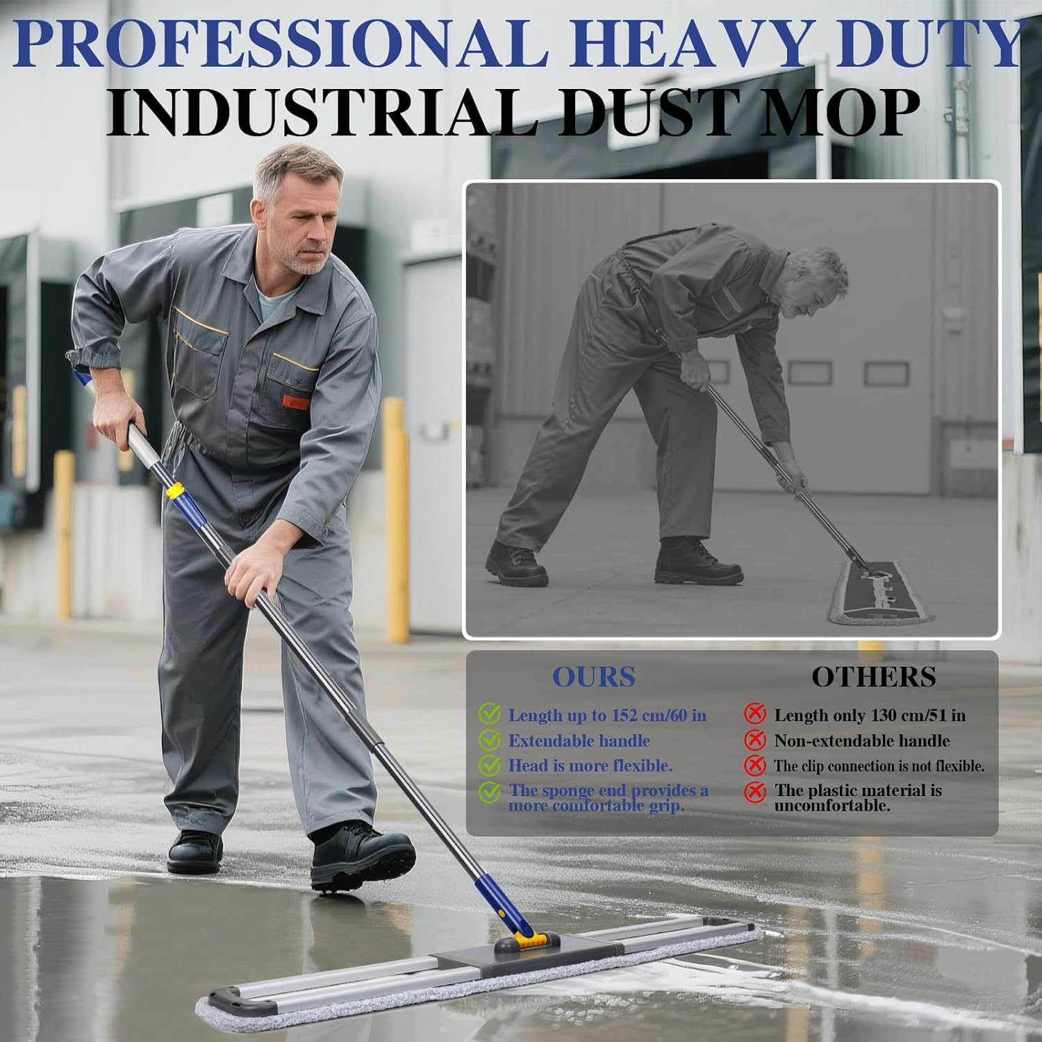 - Lightweight and Flexible: The aluminum wet mop base is durable yet significantly lighter, making cleaning easier. The dust mop head can rotate 360Β°, making it easy to clean under beds, tables, cabinets, crevices, and any other hard-to-reach areas. The lightweight and flexible wide mop saves time and effort.