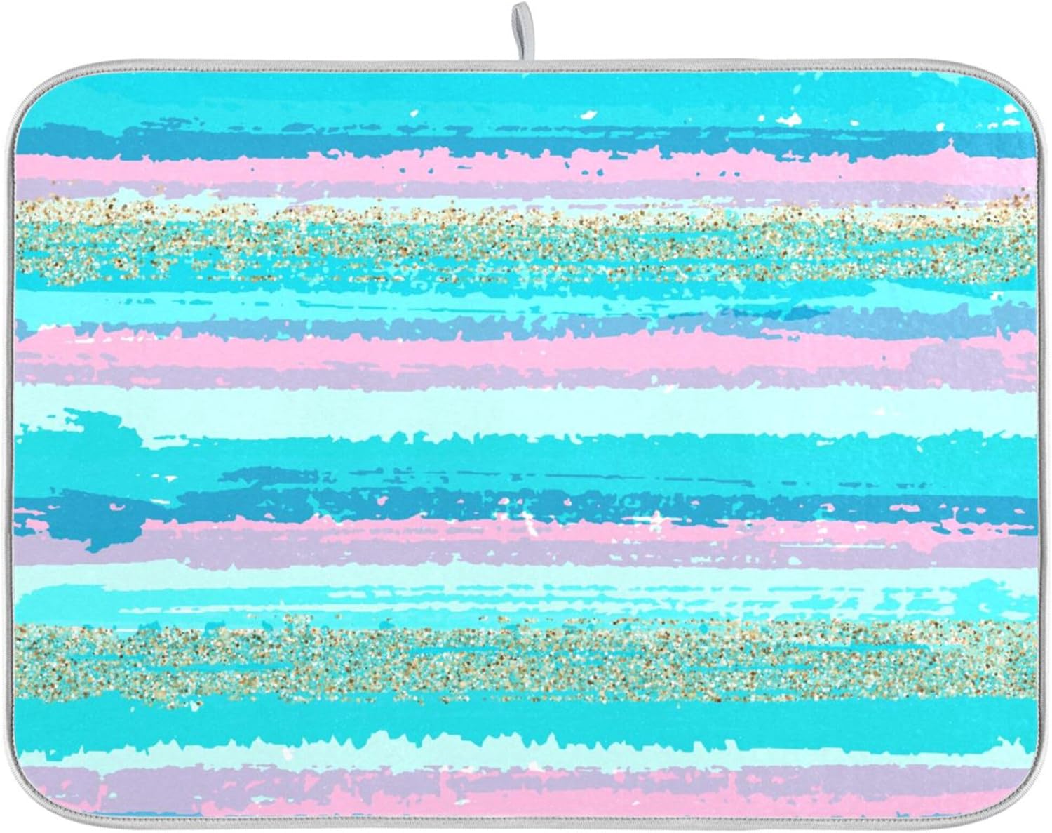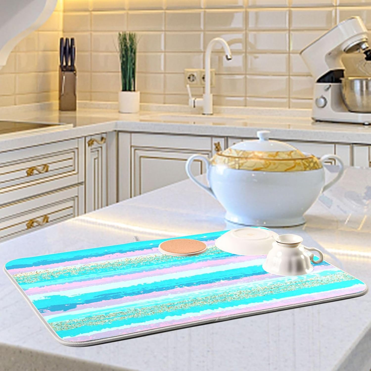 Turquoise Stripe Dish Drying Mat for Kitchen Countertop 18x24 Rectangle Teal Aqua Large Drying Mat Reusable Quick Dry Dish Sink Absorbent Mats Dishwasher Easy Clean Decorative Home Decor Essentials