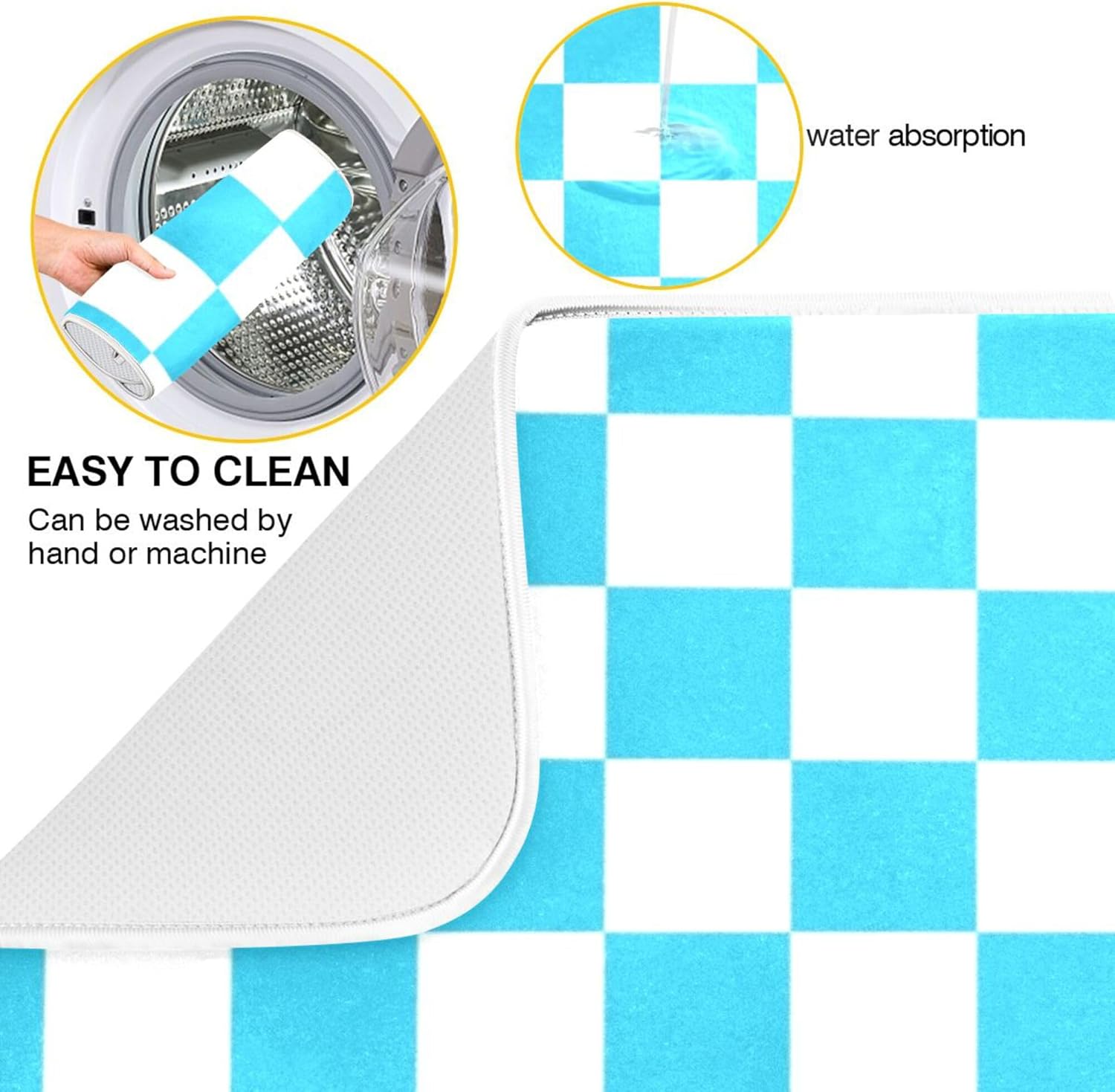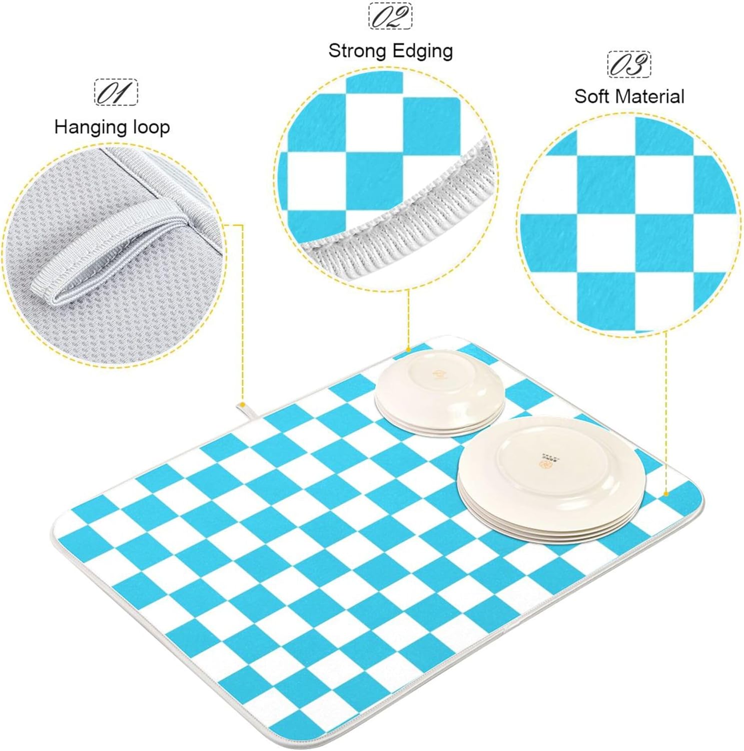 Turquoise Chessboard Dish Drying Mat for Kitchen Countertop 18x24 Teal Plaid Checkered Rectangle Large Drying Mat Reusable Quick Dry Dish Sink Absorbent Mats Easy Clean Decorative Home Essentials