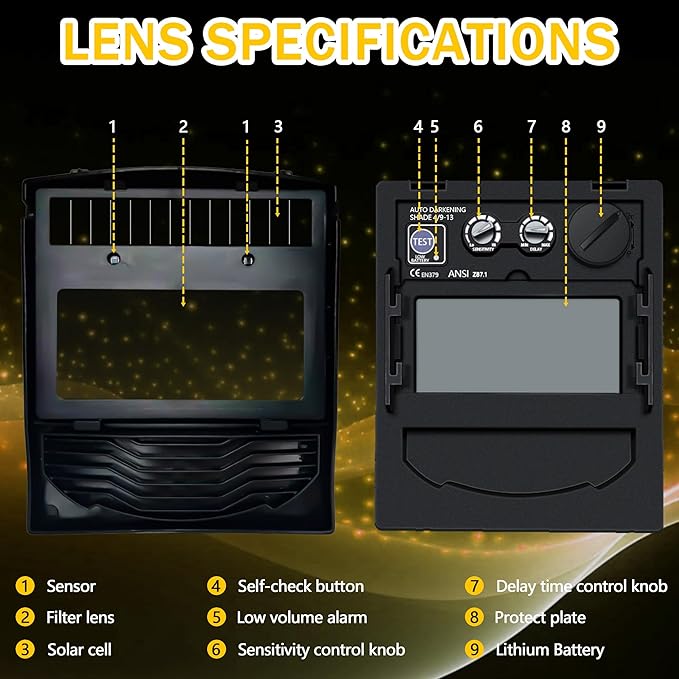 - Wide Viewing Area with Dual Sensors-Equipped with a 3.64" x 1.67" high-visibility screen and two responsive sensors for quick auto-darkening within 3/10000 seconds.