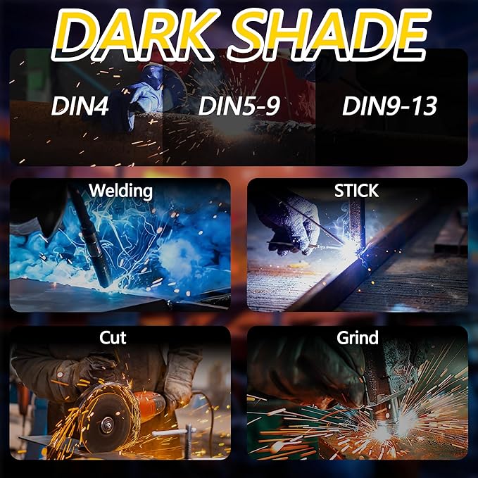 - Compatible with TIG, MIG, MMA, and Grinding Modes-Supports a wide range of welding processes with flexible shade control, ideal for both professional welders and DIY enthusiasts.