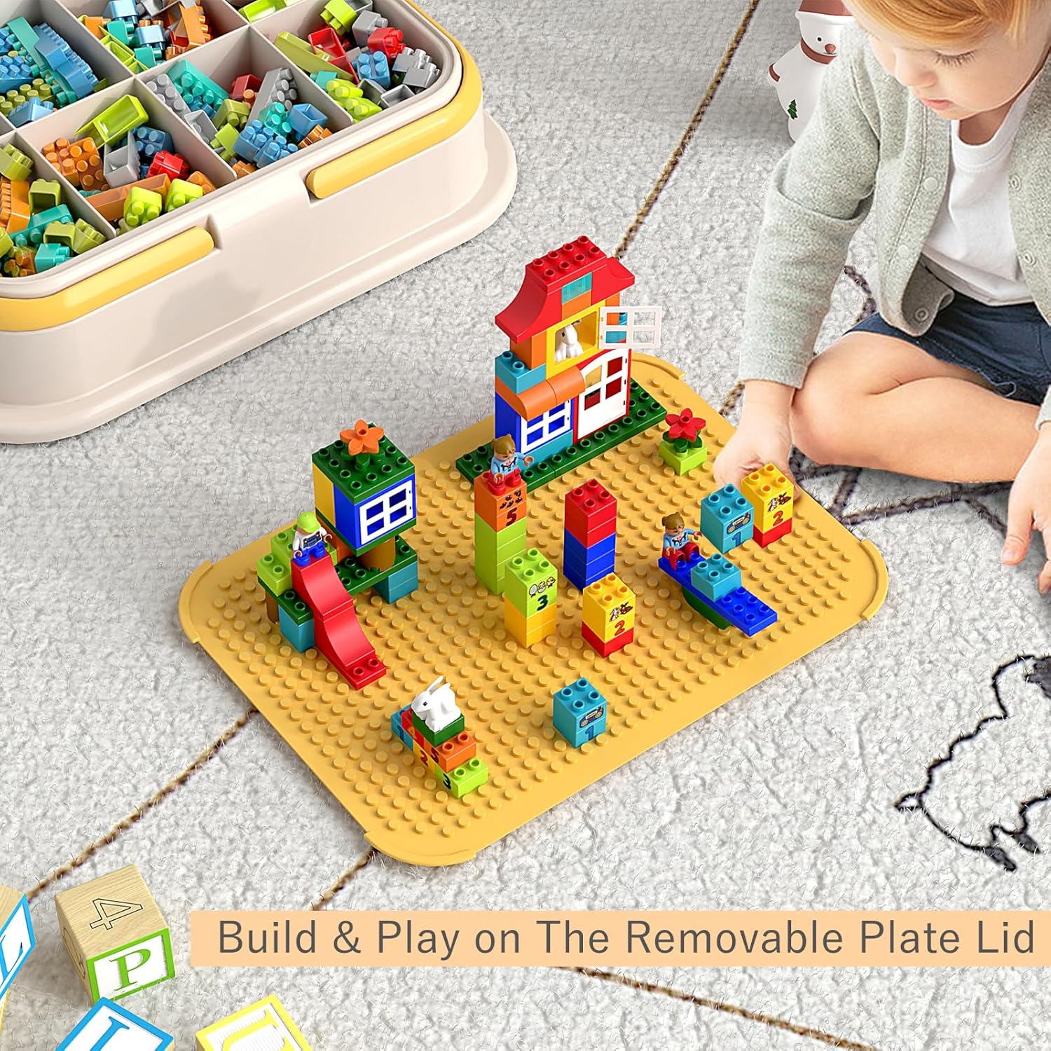 - 【Integrated Building Plate Lid & Carry Handle】 The unique lid doubles as a buildable baseplate, transforming this toy box with lid into a portable play station. A sturdy carrying handle is built into the top sorter box, allowing kids to easily transport their entire collection. It's the most fun and functional Lego storage box you'll find!
