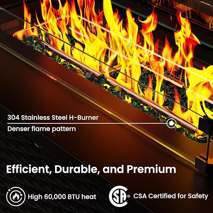 - Powerful 60,000 BTU Heating: Enjoy efficient warmth on chilly nights with this high-heat 60,000 BTU output Ciays propane fire pit. The durable 304 stainless steel H-burner creates a denser flame pattern for consistent & effective heating. This gas fire pit will elevate your outdoor experience, reliability and safety.