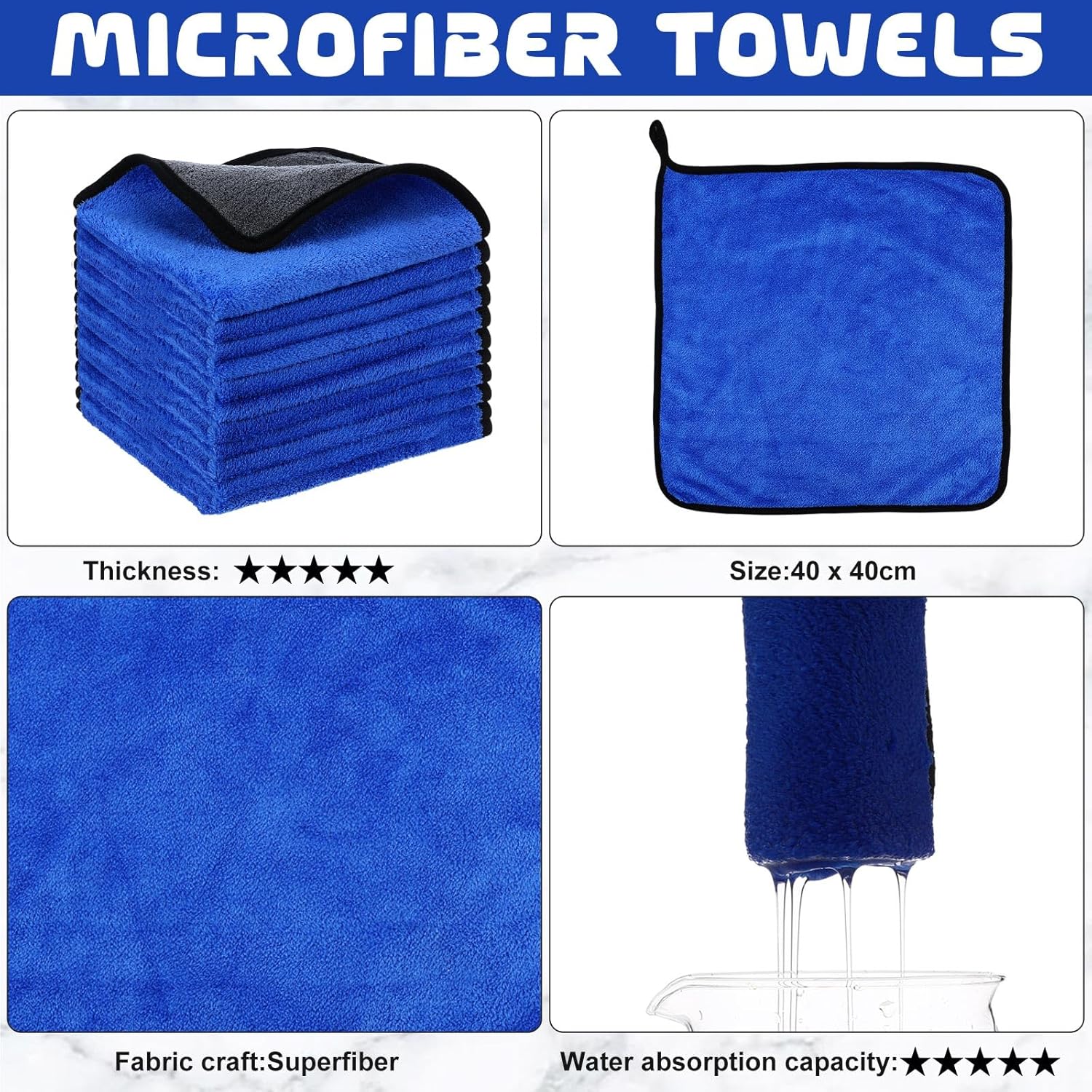 - Ideal Cleaning Tool: the size of the microfiber towel cloth measures 16 x 16 inches/ 40 x 40 cm, the right size makes it easier for you to hold while doing housework or car wash, soft, fluffy and hard to deform, these microfiber towel can spotlight the dirt, you can clearly see the dirt at a glance and remove