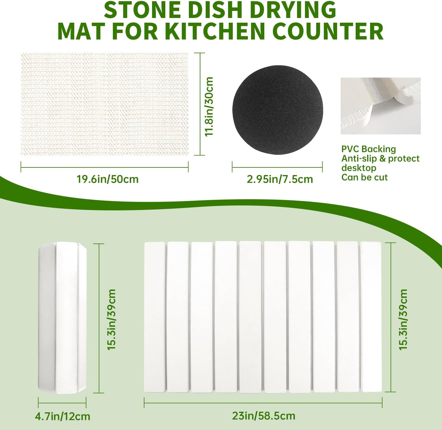 Stone Drying Mat for Kitchen Counter Square, 23.62"x15.35", Collapsible Quick Dry Dish Drying Mat, Absorbent Diatomaceous Earth Pads Match Any Countertop for Dishes Kitchen and Bathroom