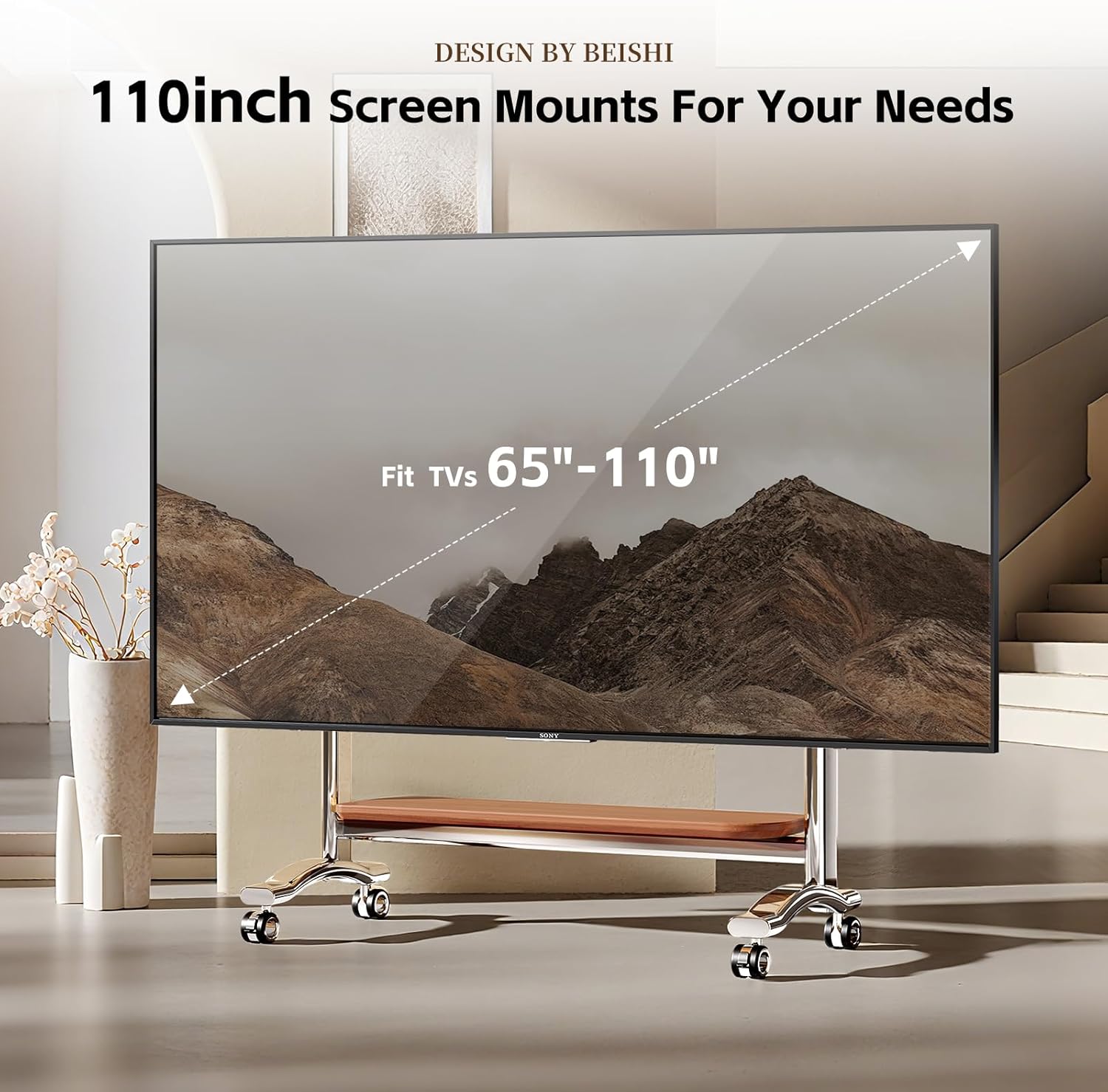 - AVIATION-GRADE SWIVEL CASTERS: Imagine being able to effortlessly slide your TV from the living room to the bedroom or balcony with just a light push—all thanks to the smooth design of the BEISHI roller TV stand. This stand is equipped with smooth, quiet casters with a braking function, ensuring stability when stationary and ease of movement when in use. Whether for family gatherings, office meetings, hotel displays, or school teaching, this wheeled TV stand is the ideal choice.