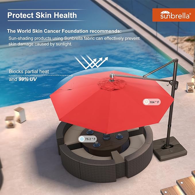 - This cantilever umbrella has unique handle design with 5 tilt positions, and 360Β° rotation allowing smooth adjustment to the sun's changing angles.