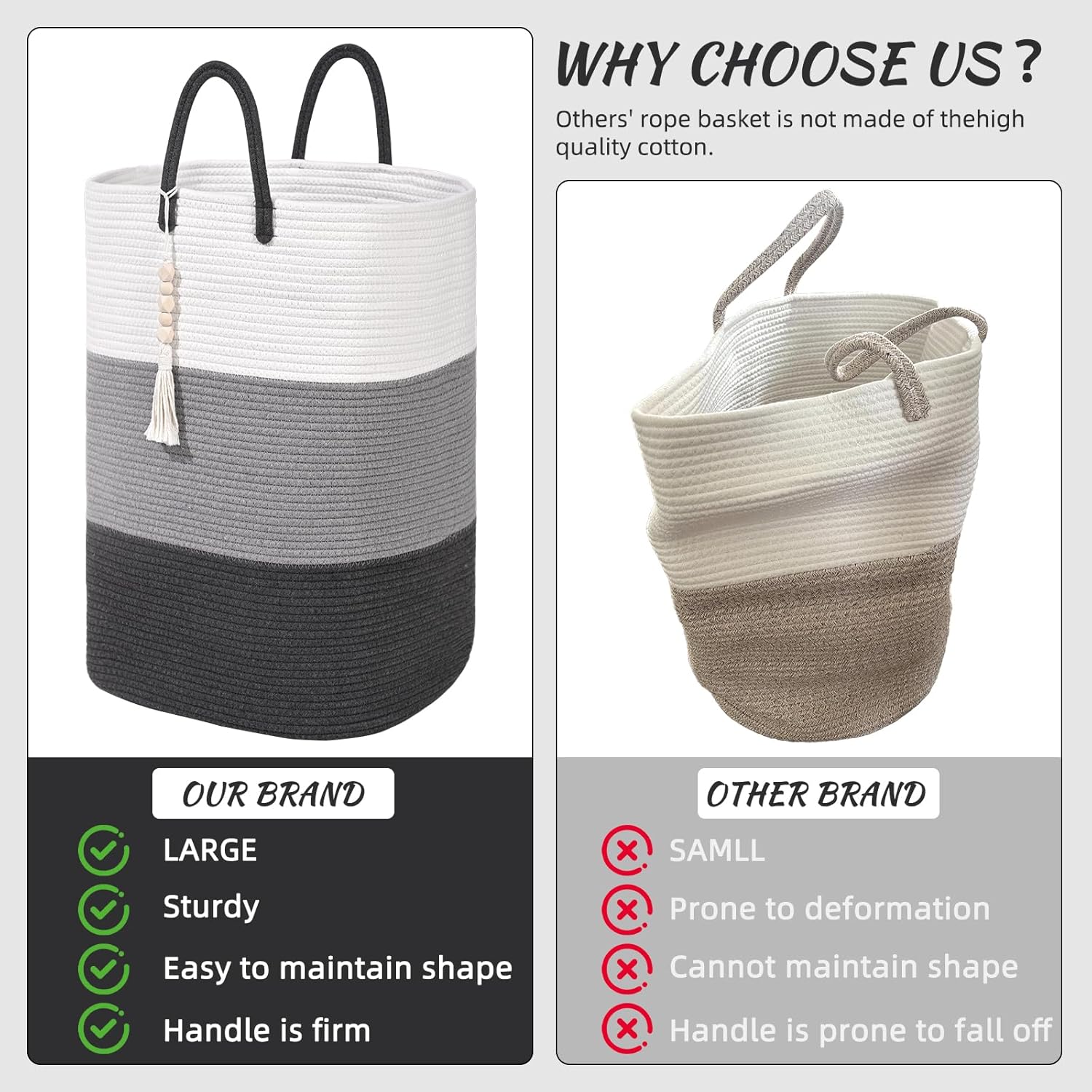 - π[DURABLE, BREATHABLE & SKIN - FRIENDLY COTTON]: Made of sturdy and odor-free rope cotton, woven laundry basket has a solid addition to any space. Tall laundry basket quite sturdy and spacious, capable of holding a good amount without losing its shape, which adds to its practicality.