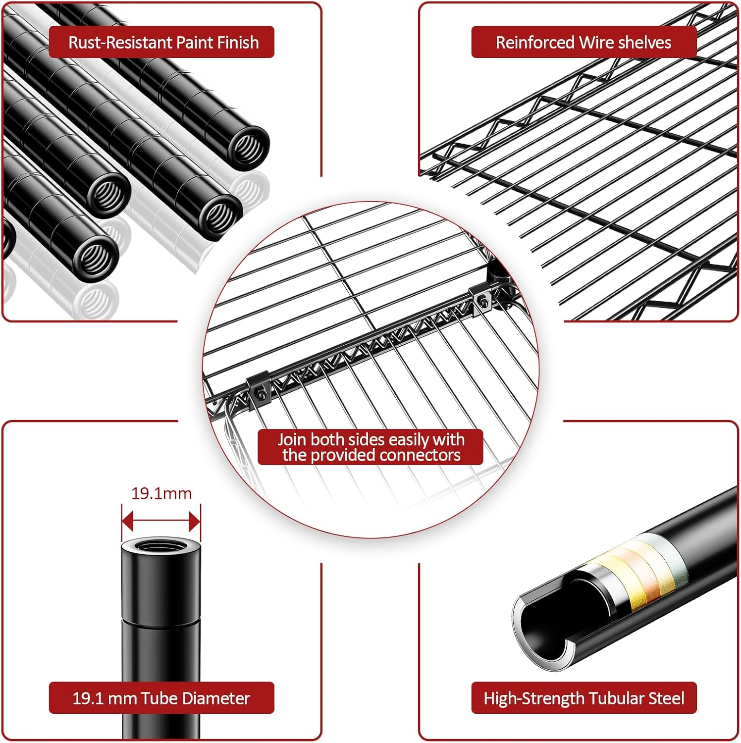 IZEUK Linked Storage Racks, DIY Adjustable Heavy Duty Metal Shelving Unit for Corner, Ideal for Kitchen, Garage, Warehouse, and Garden (Black, 4 Tiers, 15.7" D x 33.5" W x 59.5" H, 1147 lbs Capacity)
