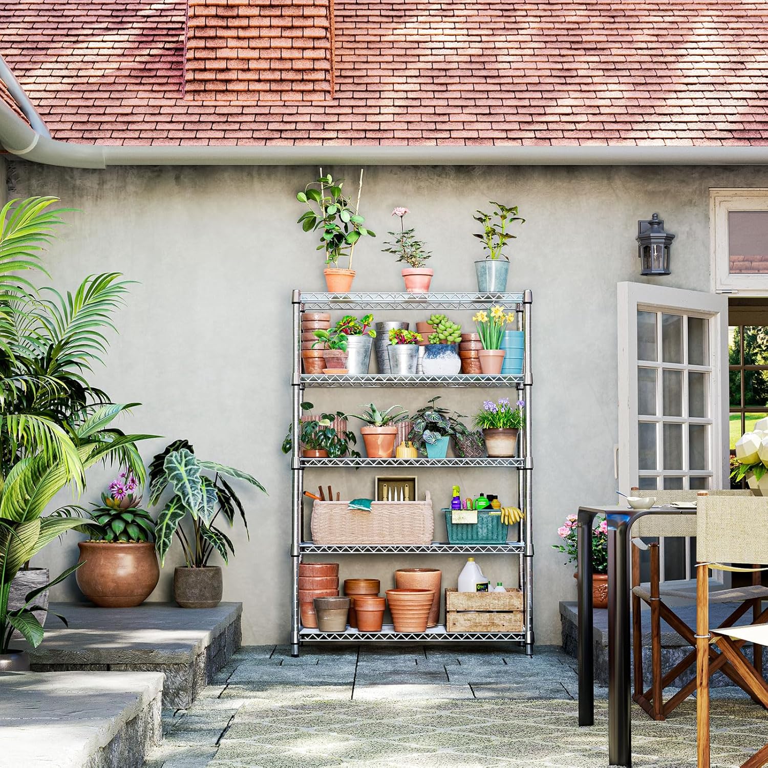 IZEUK 1750LBS Garage Shelving Wide Storage Shelves 5 Tier Metal Shelves Heavy Duty Adjustable Utility Shelf Rack (Chrome, 5 Tier, 15.7" D x 45.3" W x 70.9" H)