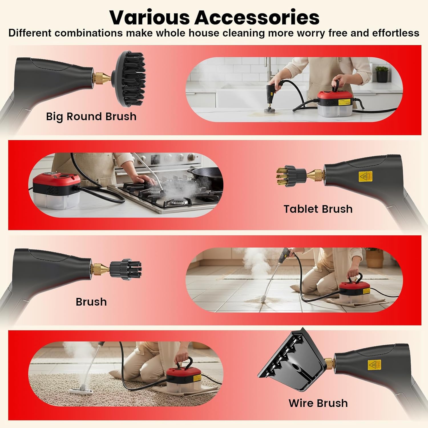 - 【Extra-Large 1.2L Water Reservoir】Clean longer without constant refills! The clear, oversized tank provides extended steam time, ideal for full-home deep cleaning or car detailing in one go.