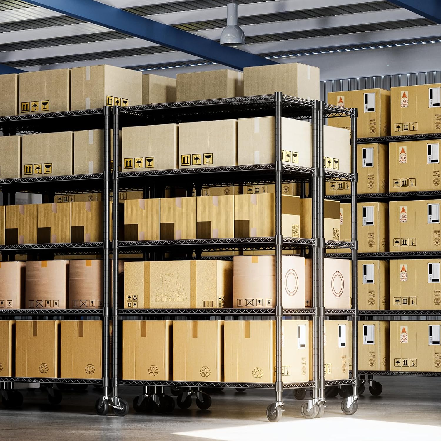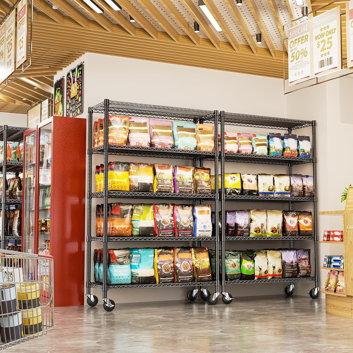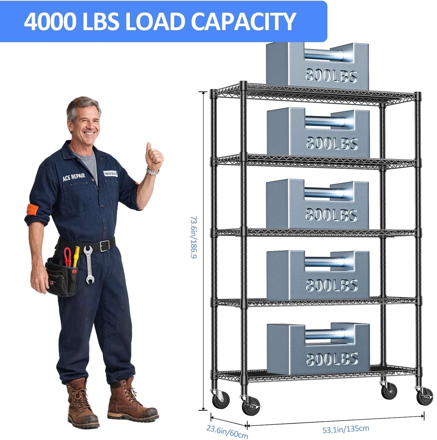 - COMMERCIAL-GRADE HEAVY DUTY β Made from high-quality carbon steel with 25.4mm reinforced rods, this heavy duty garage shelving supports up to 660 lbs per shelf and 2640 lbs total on leveling feet (approx. 530 lbs on wheels).