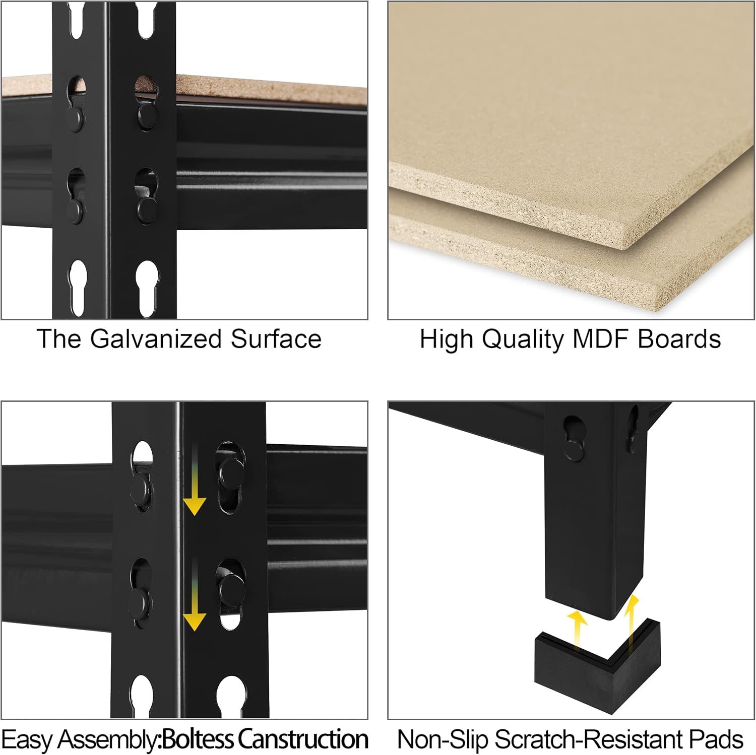 - 【 HEAVY DUTY & LONG-LASTING】 : This 5-tier garage shelving is made of high-quality 0.3" thicker MDF boards and 0.03" thicker heavy duty galvanized metal frame, sturdy and enduring. The metal frame is covered with premium powder coating to give it a smooth surface. Each shelf holds up to 265 lbs, 5 tier shelves' total max load weight is 1325 lbs