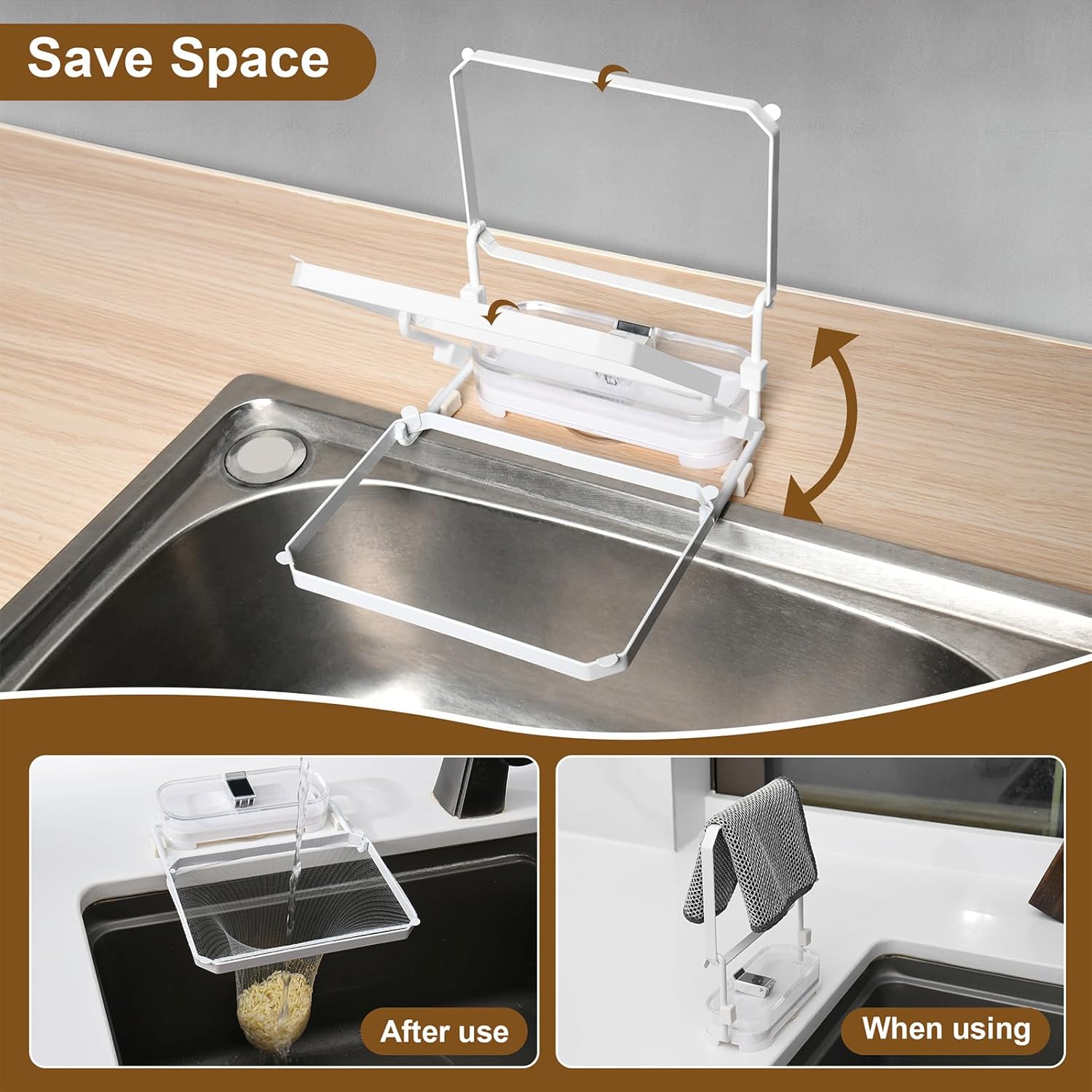 - 3.Space-Saving & Multi-Functional Design:Features a versatile design that rotates 90Β° to stand upright as a towel/dish rack or folds compactly when not in use. kitchen sink garbage strainer as a drain rack for fruits, veggies, and dishes.