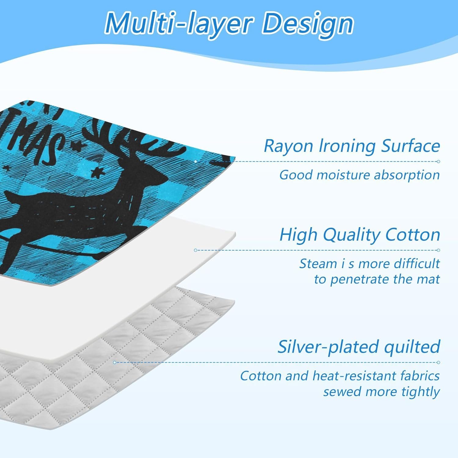 Ironing Mat Portable Ironing Pad Ironing Blanket for Table Top Heat Resistance Double-Side Using Travel Large 47.2 x 27.6 Inch Foldable Lightweight Christmas Check Elk Blue