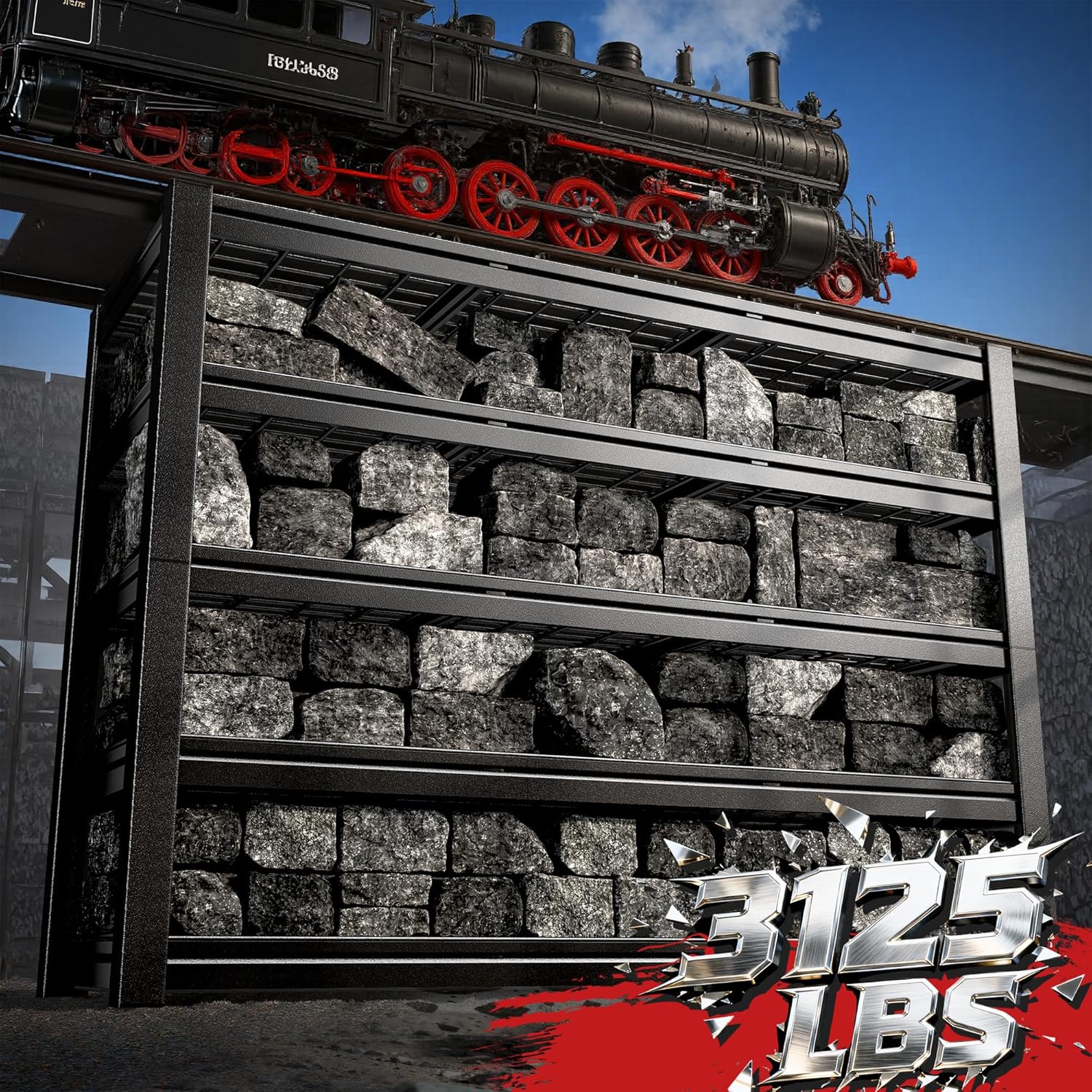 - ăDouble Layer Upright Design and Heavy Duty Reinforced Metal ConstructionâăThis garage shelving features a double-layer upright design, that are wider and thicker than ordinary shelves. Each tier includes added support rods, delivering a 625 lbs per shelf capacity and a total load capacity of 3125 lbs. This industrial-grade build ensures maximum stability and safety for heaviest tools and equipment, providing complete peace of mind